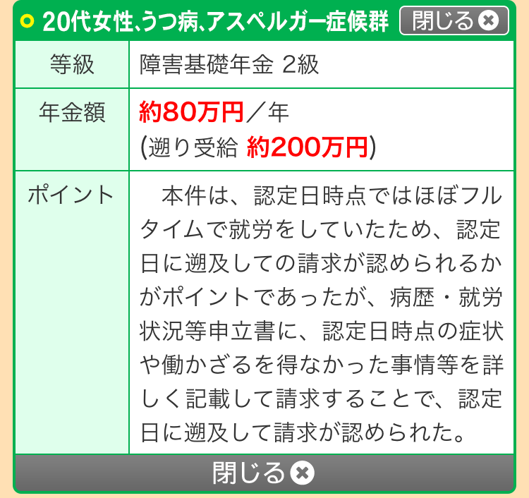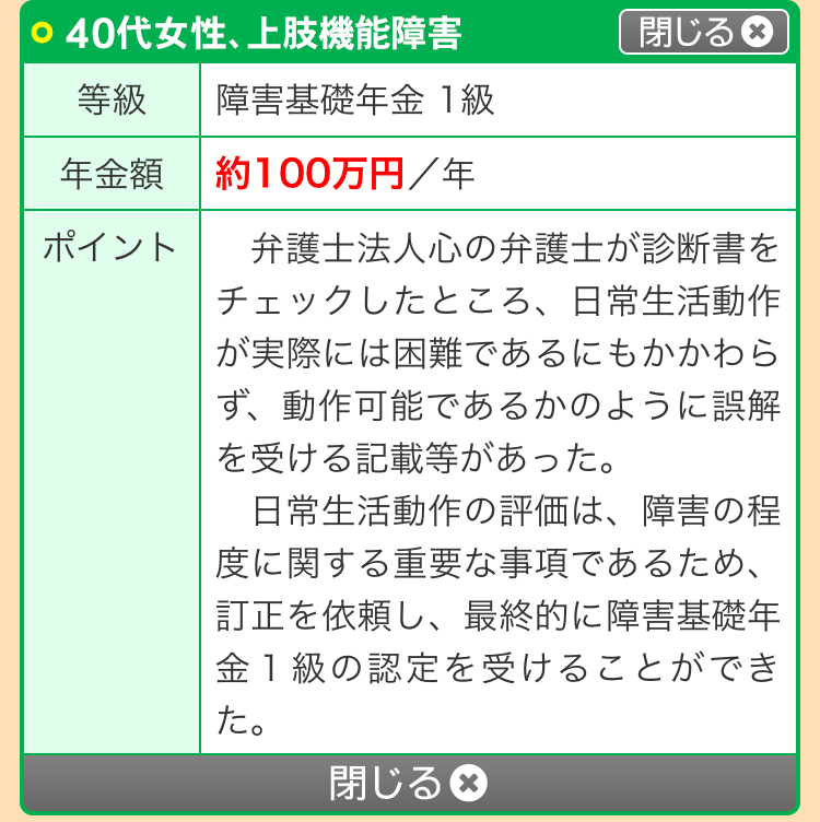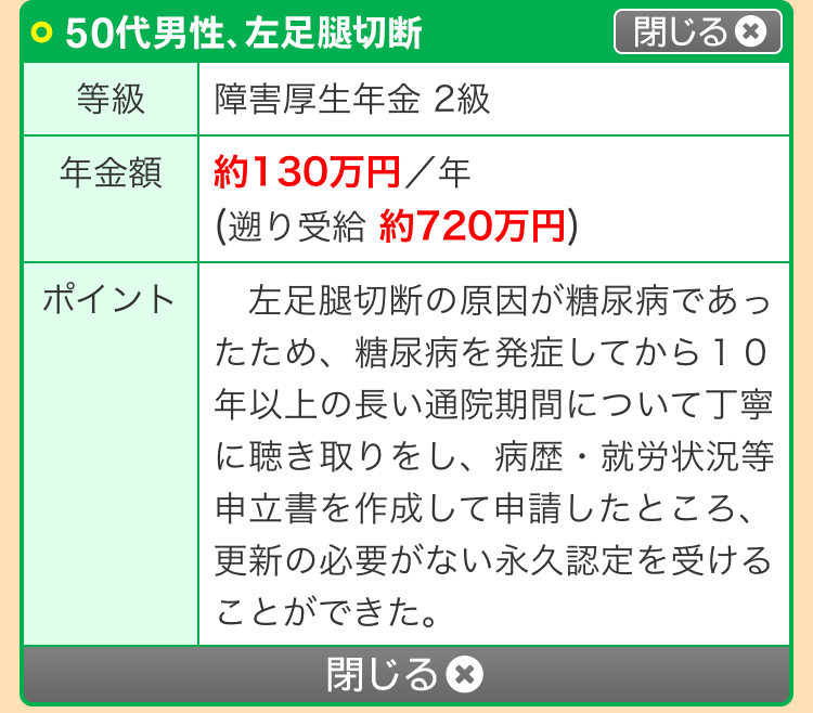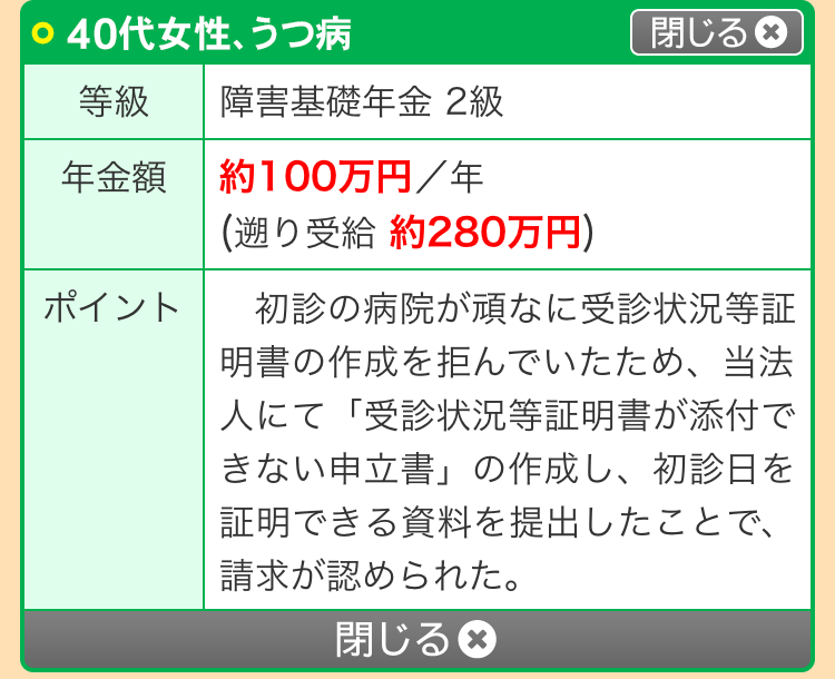 私たちがこれまでサポートしてきた受給事例の一部をご紹介しています。幅広い傷病に対応可能ですので、まずはお気軽にお問い合わせください。