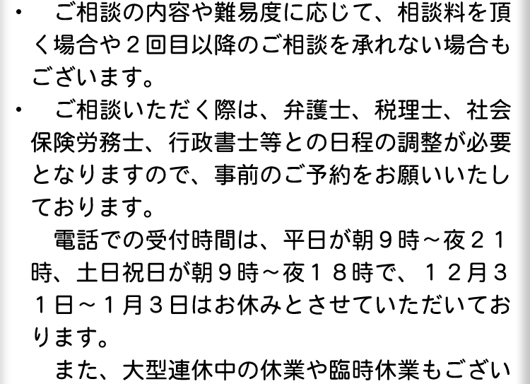 県内に複数の事務所がありますので、事務所での相談をご希望の方は、こちらから事務所の情報をご確認ください。お問合せ先もこちらからご覧いただけます。