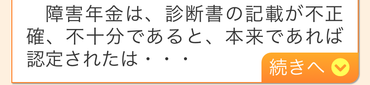 その書類に記載される内容が、実際の障害の状況と異なっていると、適切な等級が認定されず、実際の障害の状態から見れば低い金額の受給となってしまうこともあります。