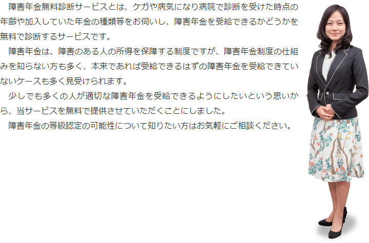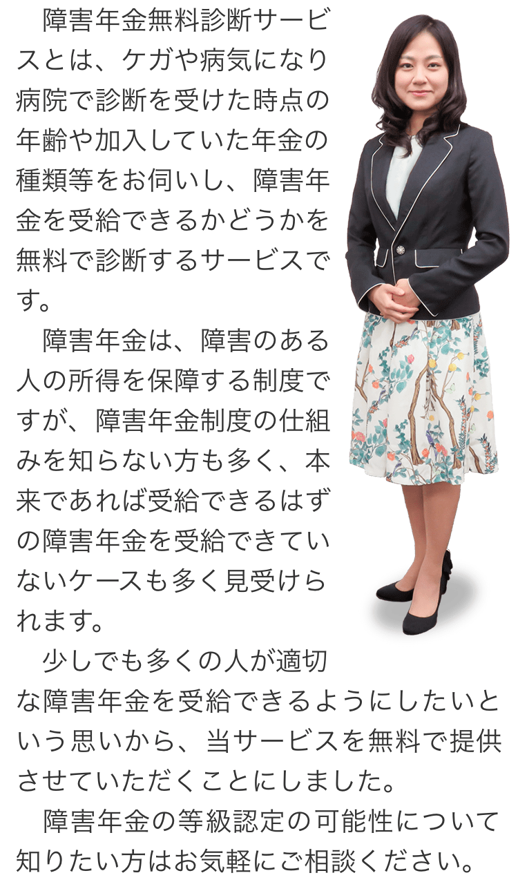こちらは、障害年金の無料診断サービスについてご案内しているページです。