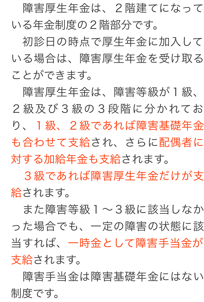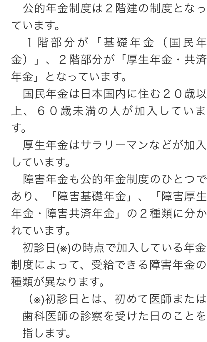 トップお役立ち情報障害年金の種類 階層構造▼ お役立ち情報(目次) 障害年金の種類1 公的年金制度は2階建の制度2 障害基礎年金3 障害厚生(共済)年金・障害手当金 1 公的年金制度は2階建の制度2 障害基礎年金3 障害厚生(共済)年金・障害手当金 お役立ち情報(目次)お役立ち情報トップ障害年金を受給するためのポイント障害年金で必要な書類不支給通知が届いた場合働きながら障害年金を受給できる場合障害年金の種類障害年金の支給日精神疾患について障害年金が認められる基準額改定請求について障害者手帳について 受付時間 平日 9時~21時、土日祝 9時~18時 夜間・土日祝の相談も対応します (要予約) 0120-25-2403 お問合せ・アクセス・地図